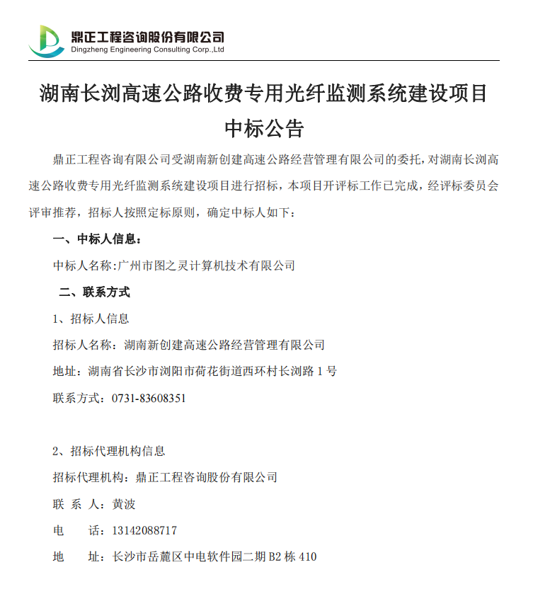 湖南長(zhǎng)瀏高速公路收費(fèi)專用光纖監(jiān)測(cè)系統(tǒng)建設(shè)項(xiàng)目中標(biāo)公告