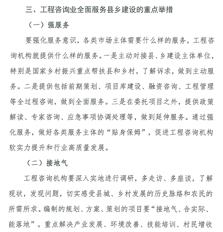 在全球變暖環境趨勢和一系列“雙碳”政策出臺下,綠色低碳成為企業發展新賽道。在《關于推進以縣城為重要載體的城鎮化建設的意見》中指出大力發展綠色建筑、節能門窗、綠色建材、綠色照明,全面推行綠色施工,綠色和“雙碳”咨詢將貫穿工程咨詢的始終。節能低碳咨詢,可為地方政府提供區域性節能評估報告的服務,協助政府統籌區域能源消耗,為當地產業、社會經濟等方面的規劃作出指導,為區域內節能減排工作提供重要依據。