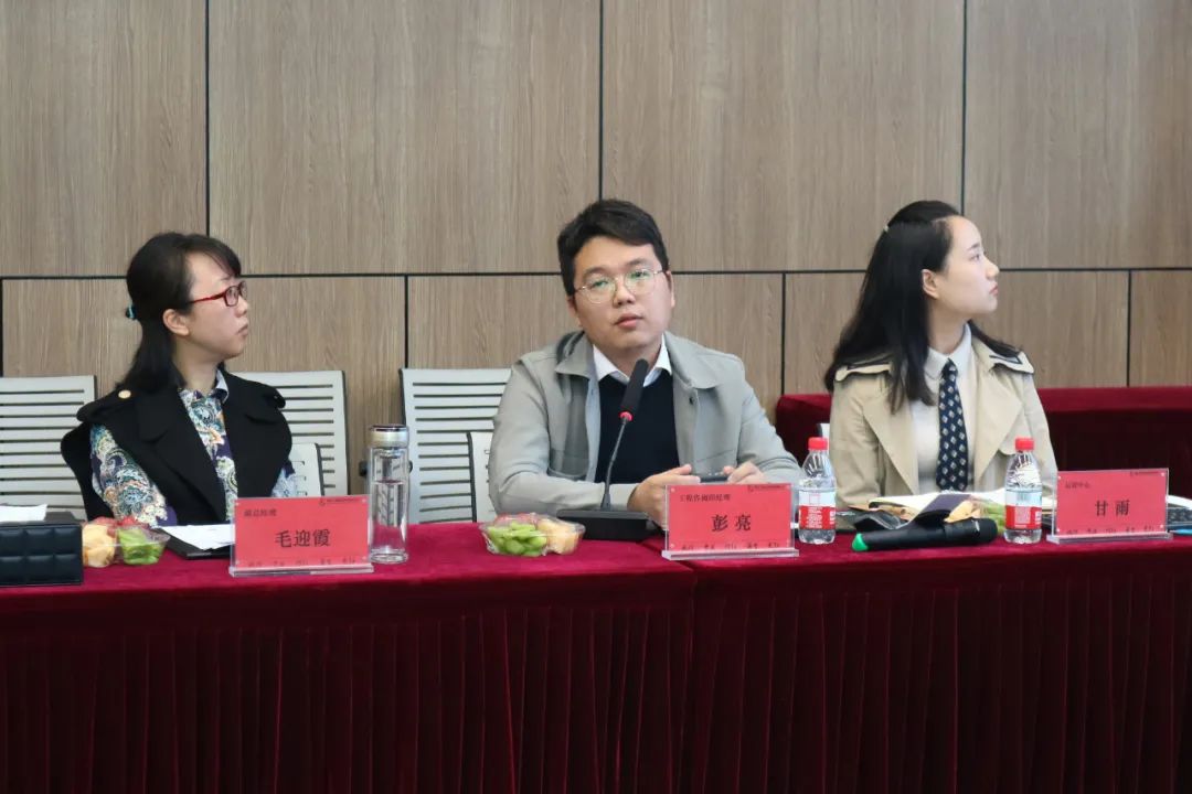 參觀結束后,在鼎正一樓珞珈會議室進行正式的調(diào)研座談,公司董事長王雁然、副總經(jīng)理毛迎霞、副總經(jīng)理姚建功、工程咨詢事業(yè)部經(jīng)理彭亮及相關部門經(jīng)理列席參加座談會。