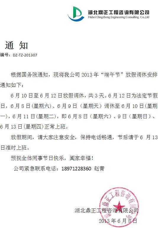2013年“端午節(jié)”放假通知