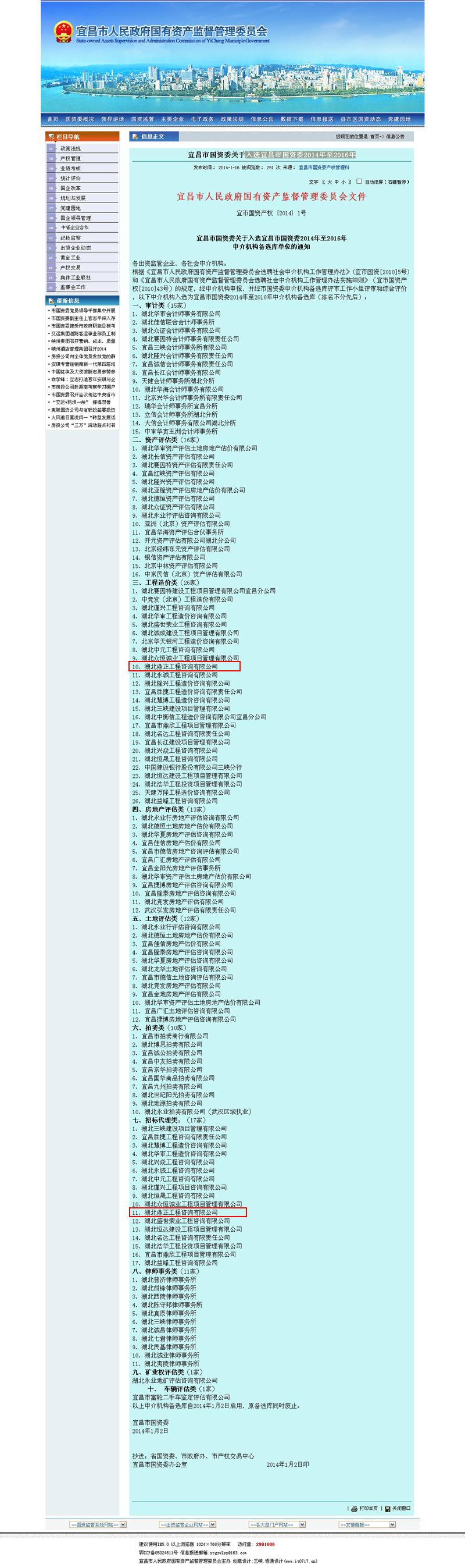我公司入選宜昌市國資委2014年至2016年中介機構備選庫