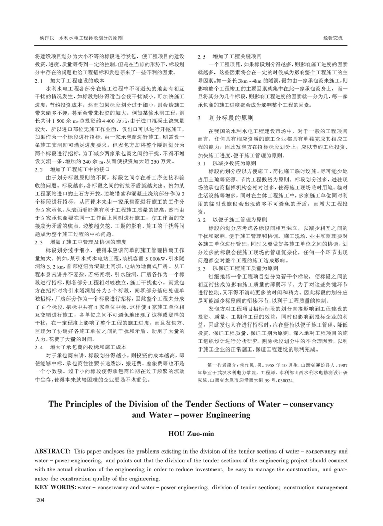 水利水電工程標(biāo)段劃分的原則