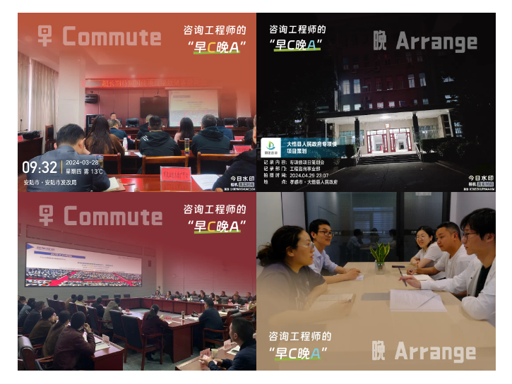 早:晨光熹微,咨詢工程師,以飽滿的激情向項目地出發。超長期特別國債項目研究團隊,Commute(通勤)往返于客戶和公司兩地之間,為多地政府部門及企事業單位,做項目謀劃、診斷、咨詢。