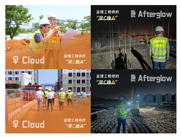 早:天還未亮,監理工程師,已經到達施工現場。迎著Cloud(藍天白云),開啟第一輪現場巡查,頭戴安全帽,手夾施工圖,一邊巡查一邊記錄。