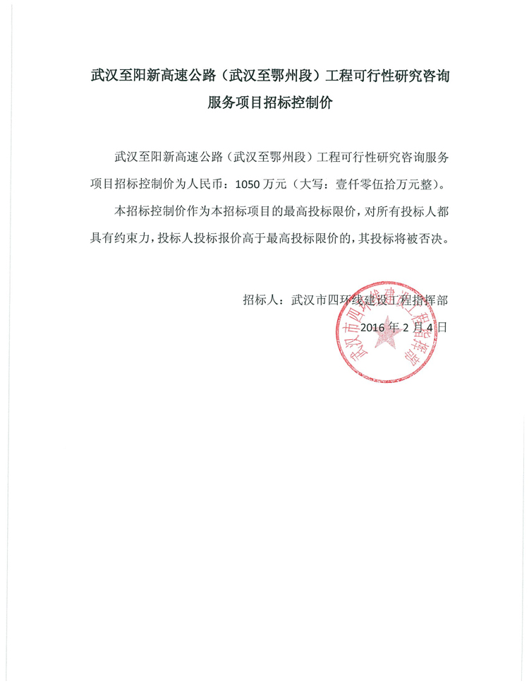 武漢至陽新高速公路(武漢至鄂州段)工程可行性研究咨詢服務(wù)項(xiàng)目招標(biāo)控制價(jià)
